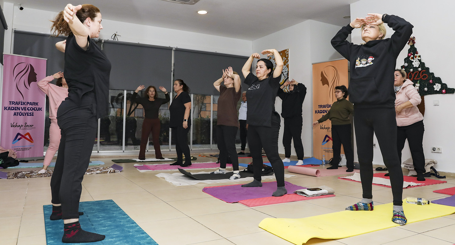 Mersin Büyükşehir Belediyesi Kadın ve Aile Hizmetleri Dairesi Başkanlığı bünyesinde yer alan Trafik Park Kadın ve Çocuk Atölyesi’nde devam eden ‘Kadınlara Özel Nefes ve Hareket Eğitimi’ ile kadınlar; doğru nefes alma tekniklerini, doğru nefes almanın beden ve zihin sağlığı üzerindeki olumlu etkilerini ve hayat enerjisinin bedene yayılmasını keşfeden bir yolculuğa çıkıyor. ‘Matını al gel, nefese ve ana odaklanıyoruz’ mottosuyla süren egzersizlere katılan onlarca kadın, çalışmalarla birlikte güne enerjik başlama fırsatı buluyor.