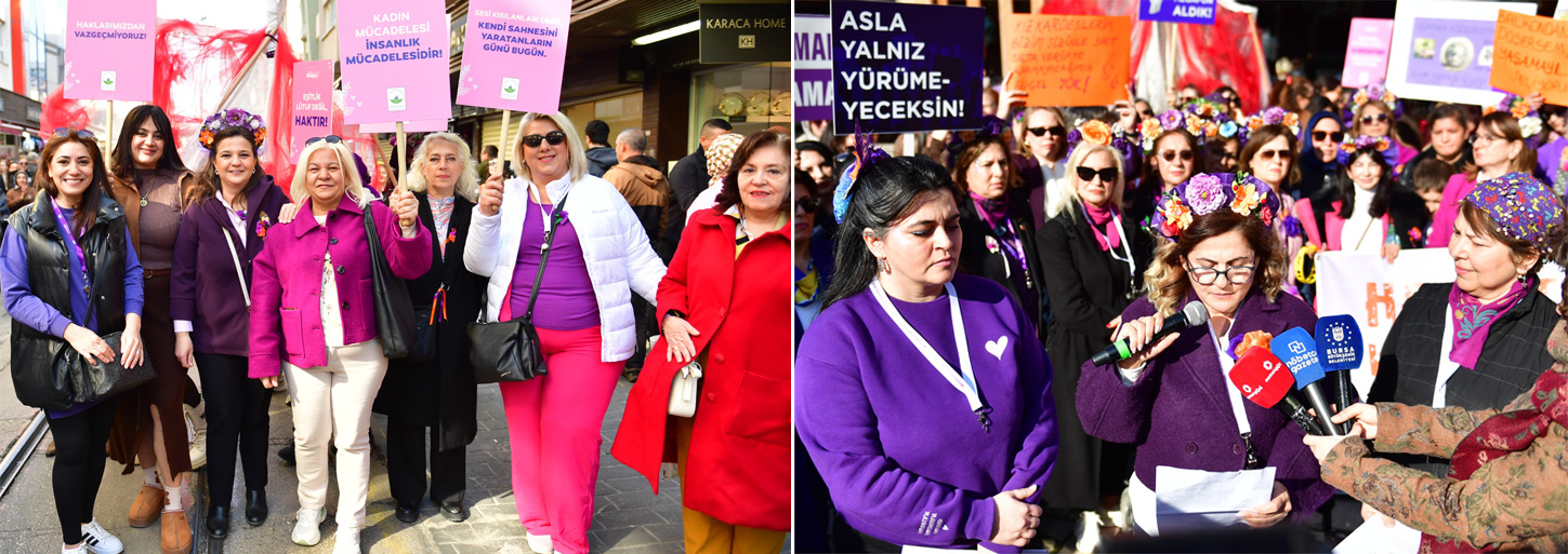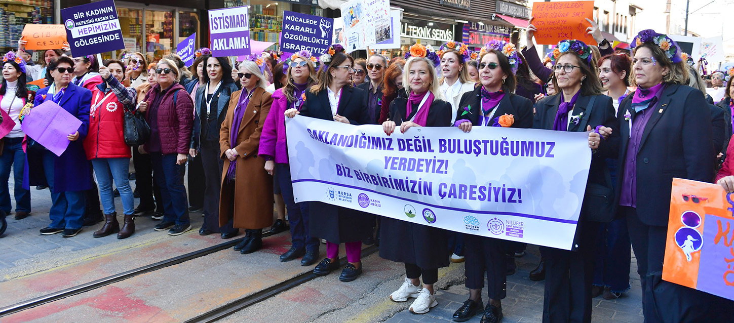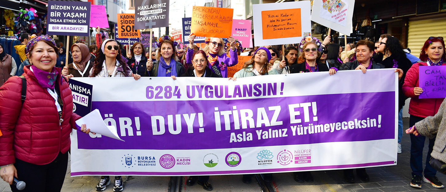 Osmangazi Kent Konseyi Kadın Meclisi, Bursa Kent Konseyi Kadın Meclisi ve Nilüfer Kent Konseyi Kadın Meclisi iş birliğinde düzenlenen 8 Mart Dünya Kadınlar Günü yürüyüşü, geniş bir katılımla gerçekleşti. Yürüyüşe katılan kadınlar, kadına şiddetin sona ermesi çağrısında bulunarak, mücadeleye devam edeceklerinin altını çizdi.