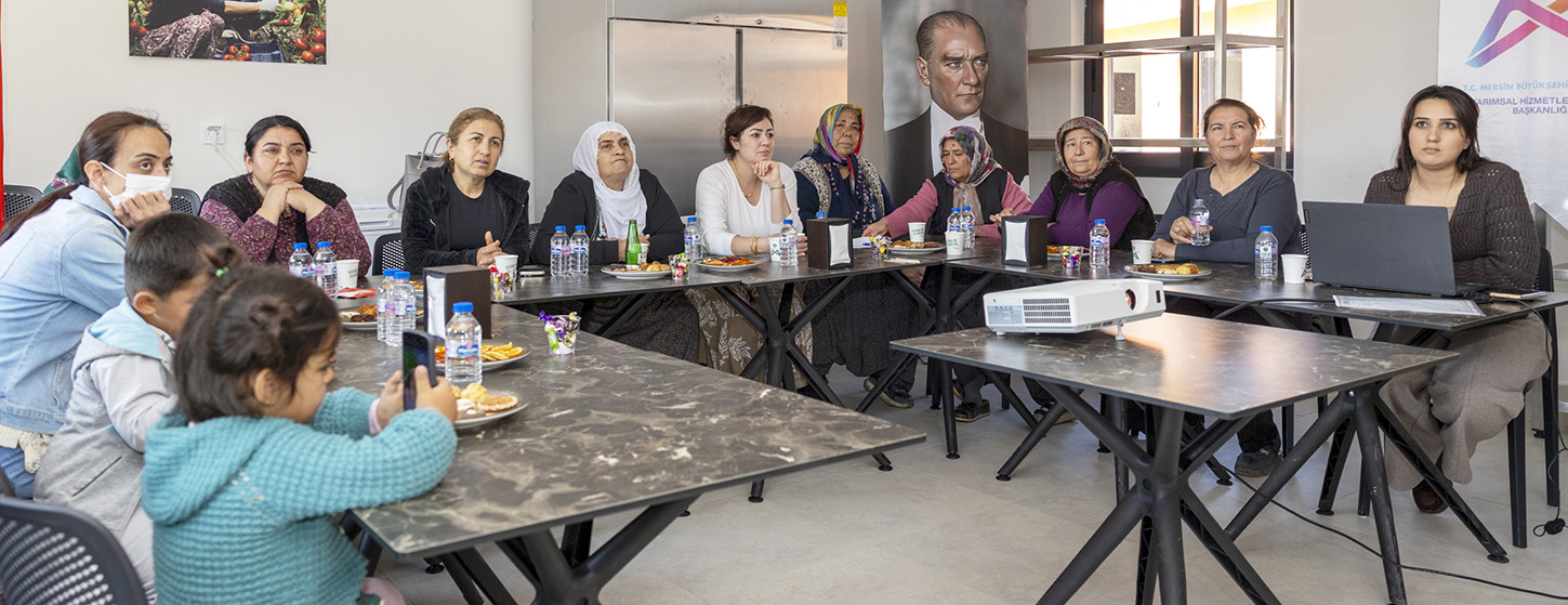 Mersin Büyükşehir Belediyesi, kırsal mahallelerde üretici kadınları desteklemeye yönelik çalışmalarını sürdürüyor. Tarımsal Hizmetler Dairesi Başkanlığı tarafından Toroslar İlçesi’nde yer alan Hamzabeyli Köyümüz Atölye’de üretici kadınlara yönelik “Gıda Okuryazarlığı Eğitimi” düzenlendi.